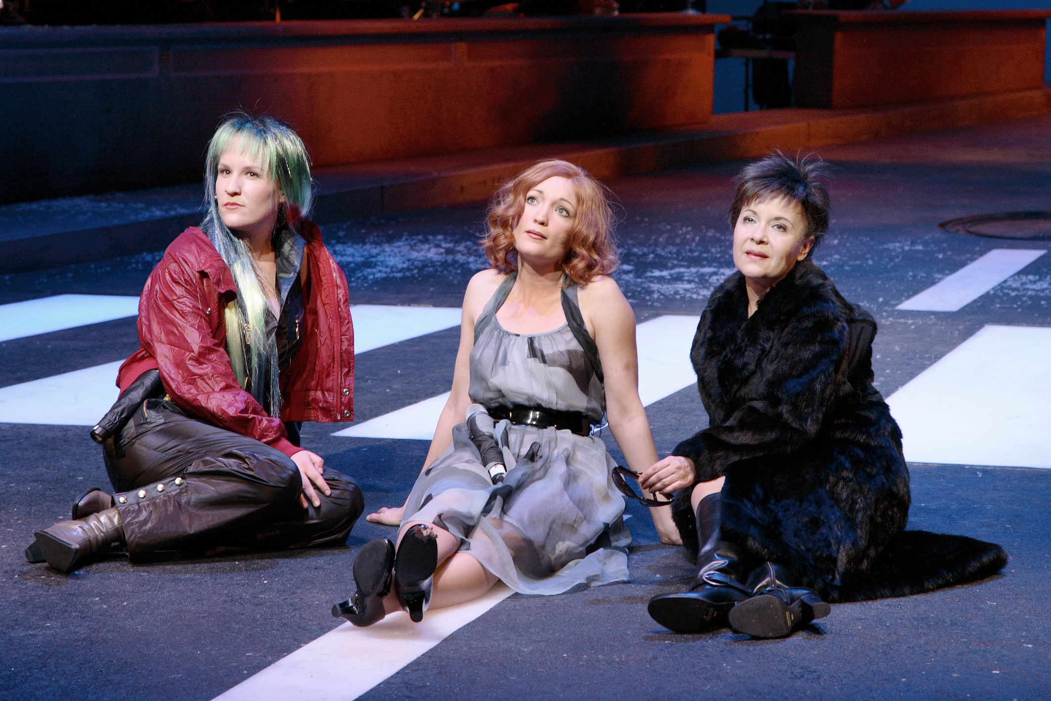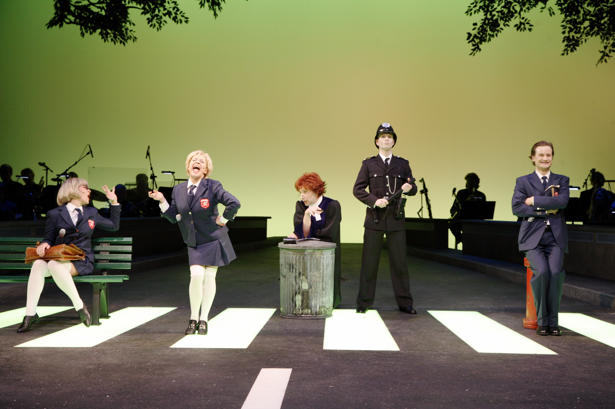 Schon das Bühnenbild von Karel Spanhak veranlasst das Publikum zu spontanem Applaus: Es sieht aus wie auf dem Plattencover, links und rechts der Straße sitzt das glänzend aufgelegte Orchester, dirigiert von Michael Frei. Dessen Arrangements des Originalmaterials sind schlichtweg großartig. So großartig wie die sängerischen Leistungen fast des gesamten siebenköpfigen Ensembles, wobei vor allem Julia Klotz mit einer unglaublich starken Stimme besticht.