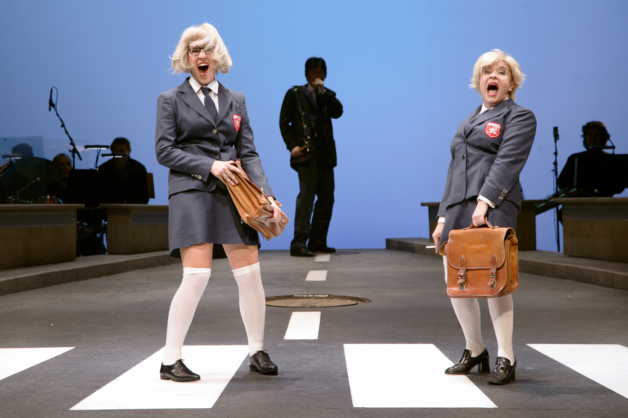 Diese Abteistraße ist der Schauplatz eines kurzweiligen, 80-minütigen Theaterabends, der es mühelos aufnehmen kann mit den ganzen Abba, Queen- oder sonstigen Musicals, die einstige Popgrößen hochleben lassen. Der für die Song-Arrangements zuständige Michael Frei und Regisseur Stefan Huber legen ihn behutsam frei, den Nerv dieses Albums, ohne allerdings – und dafür sei der Hut gezogen vor den beiden – in nostalgische Schwärmerei zu verfallen. Im Gegenteil: Die Zeitlosigkeit der Beatles-Kompositionen wird umso deutlicher, je weiter die Inszenierung vom Swinging London der Sixties entfernt ist.