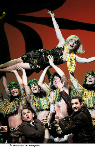 ...Und so geht's auf der Bühne in der geschickten Regie von Stefan Huber nicht nur turbulent und in den Tanzeinlagen oft wirblig, sondern im guten Sinn auch gemütvoll zu, mit fein dosierten Anleihen bei gutgemeintem Vereinstheater, mit durchaus gewollten Abstrichen an bloß äußerlicher Perfektion...Alles in allem vergnügliches Unterhaltungstheater mit Geist und Witz, engagiert gespielt und getanzt, mit einigem personellem und bühnentechnischem Aufwand in Szene gesetzt und zu Recht begeistert aufgenommen.