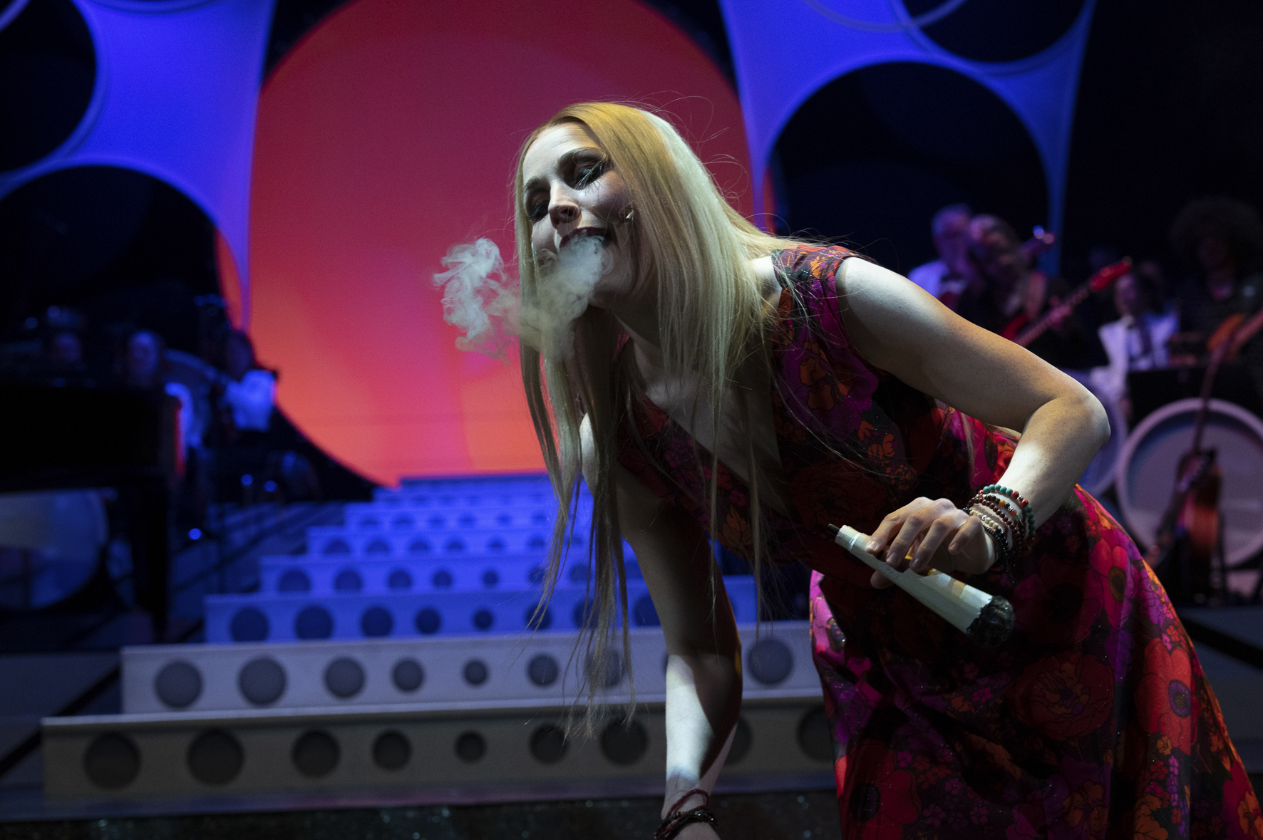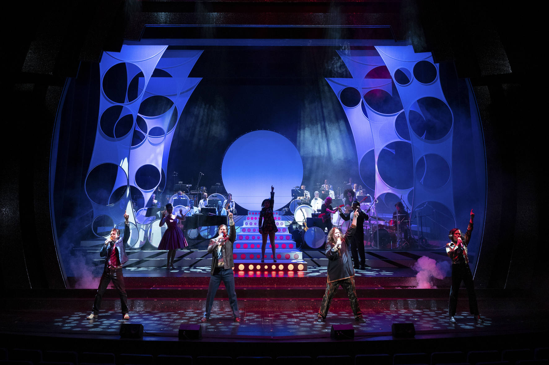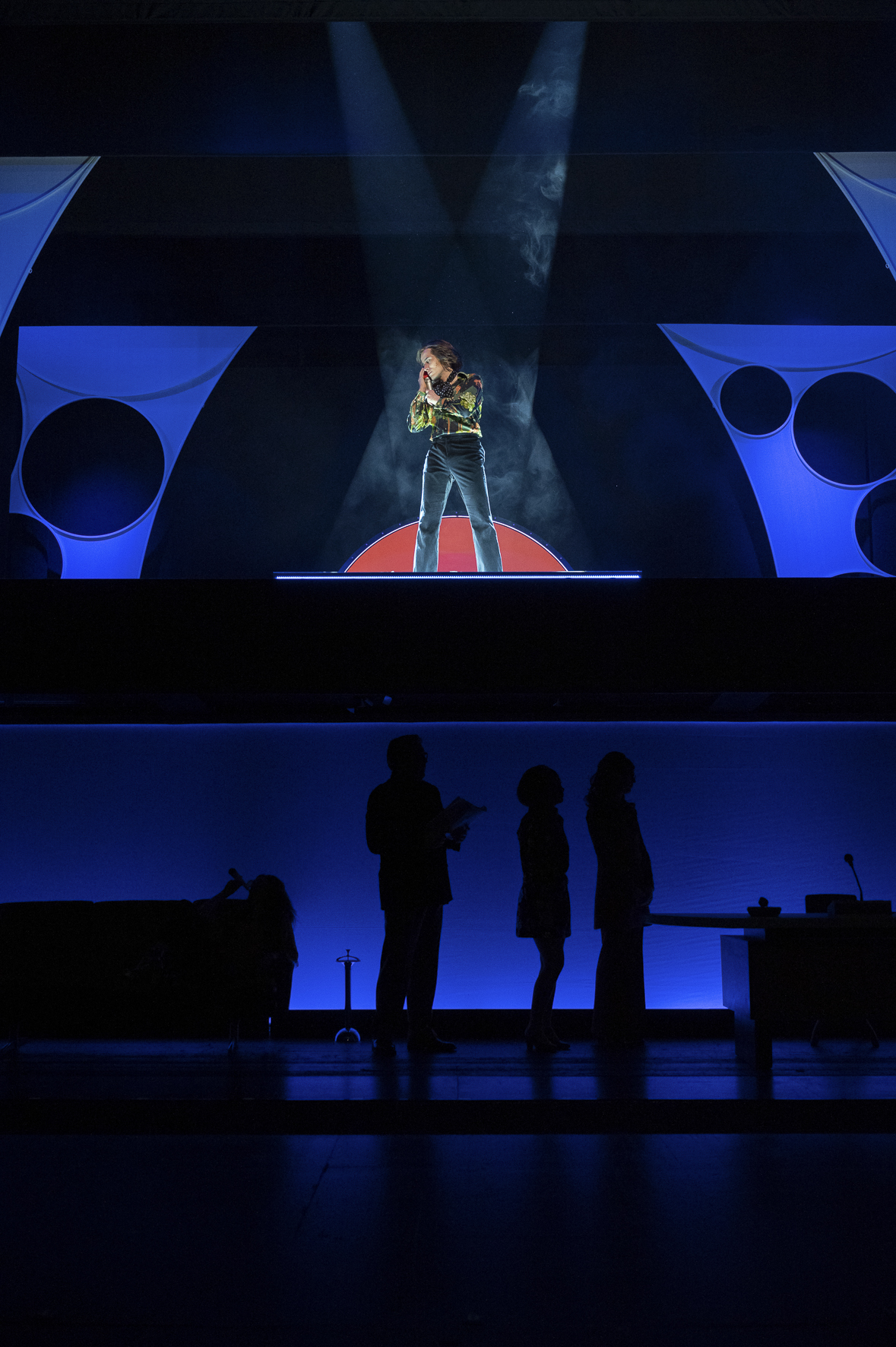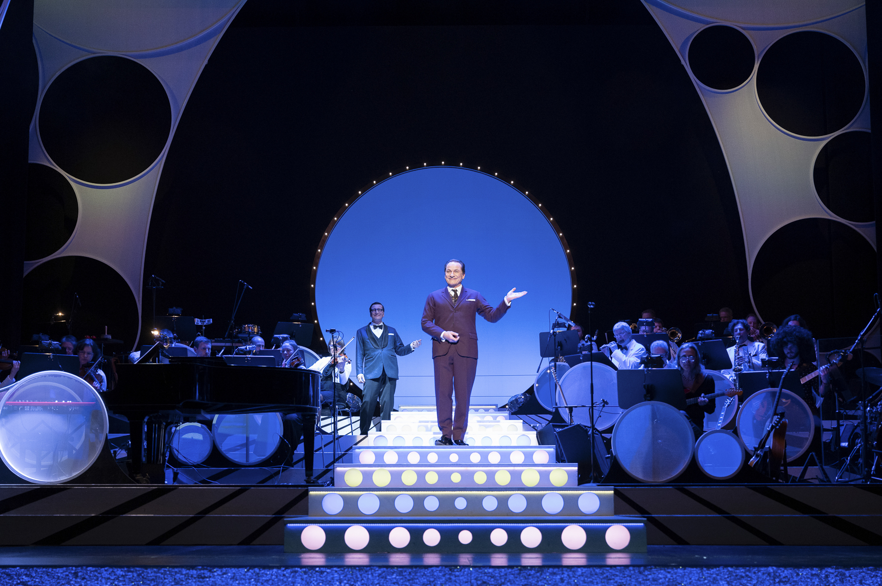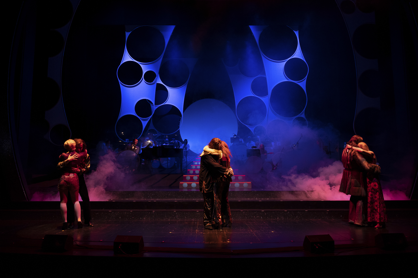 „Eigentlich ist diese Musik 50 Jahre alt, unsere Eltern oder gar Großeltern haben sie gehört, und doch kann man jeden einzelnen Song mitsingen, sie stammen aus den Jahren 1965 - 1971 aus einer politisch turbulenten Zeit für Deutschland und für die ganze Welt. Auch damals sangen die Menschen für Frieden und für Menschenrechte, auch damals waren sie froh über ein paar Stunden Unterhaltung die Konflikte und Krieg vergessen machten. Die musikalische Revue von Kai Tietje und Stefan Huber ist eine Art deutsches „Rock of Ages“, oft genauso lustig und doch historisch gründlich verankert in der Zeit als man noch West-Berlin sagte und es im Fernsehen noch einen Sendeschluss gab. Die Bühne ist ein riesiges altmodisches Fernsehgerät, der Abend beginnt mit einem Schwarz-Weiß-Film, der binnen Sekunden all die Themen jener Zeit anschneidet – Vietnamkrieg, Woodstock, Kommune und APO, Rudi Dutschke und Benno Ohnesorg, Start des Farbfernsehens, Antibabypille, den Mord an Martin Luther King, die Beatles. Und schon sind wir mittendrin in einer typischen deutschen Fernsehshow von damals. Vico von Kulenburg heißt der joviale Moderator und vereint all die Vico Torrianis und Hans-Joachim Kulenkampffs der Zeit in sich. Er hat, wie es damals üblich war, eine flotte Assistentin, er hat vor allem ein riesiges Showorchester samt musikalischem Leiter, das die komplette Showtreppe der schicken 60er- Jahre-Dekoration füllt. Drei fehlende Musiker werden, kurz bevor die Liveshow beginnt, durch die Mitglieder einer Rockband ersetzt, die einer der Stars des Abends mitgebracht hat. Und genau da beginnt das Problem. Denn man hat, um sich modern zu geben, zu altem deutschen Liedgut ein bisschen was von der neuen Musik der jungen Leute eingeladen. Der Abend beginnt mit einer gruselig familienfreundlichen Version von „Satisfaction“ und endet völlig losgelöst mit einem großen Peace-Zeichen über Marihuana-Wolken mit Anti-Imperialismus-Parolen und einem Publikum das inbrünstig John lennons „Imagine“ mitsingt. Nicht nur der aufmüpfige Regievolontär der Fernsehshow neigt zur „außerredaktionellen Opposition“ und lässt den Abend komplett entgleisen, auch einige der Gaststars scheinen direkt aus Woodstock entsprungen. Hier prallen Welten aufeinander - deutsche Schlagerstars, Hippies und Rocker, alle von Heike Seidler in perfekt zeitgemäße Kostüme gehüllt: Pullunder für die Redakteure, enge Samthosen samt Fönfrisur für den Schlagerstar und echte schmuddelige Hippieklamotten. José Luna lässt die Stars hinten durch einen James-Bond-Kreis auftreten, die niedlichen weißen Kreiselemente der Show Dekoration mutieren, wenn man sie in Regenbogenfarben anleuchtet, zu psychedelischen Bubbles. Bis auf Stefan Eichberg als Vico spielen alle Darsteller Doppelrollen einmal als Teil des biederen Fernsehteams und dann als Sänger auf der Showbühne. Regisseur Huber und Dirigent Tietje haben ihnen sprechende Namen gegeben. Pablo Guaneme Pinilla etwa vereint als Christoph Ähnlich sämtliche Klischees von Peter Maffay und Michael Holm bis Christian Anders. Sarah Finkel trägt italienische Schlager bei und findet als Vicos Assistentin Barbara kichernden Gefallen an überdimensionalen Joints. Eve Rades und Julia Klotz decken gefühlsvoll den alternativen Folk und die amerikanischen Songwriterinnen ab. Arlen Konietzund Oliver Firit die Rocker und Hippies, Gabriel Kemmether mäandert von Peter Alexander zu Reinhard Mey und Hildegard Knef. Über jedem Auftritt der etwa 30 Nummern schwebt ein Hauch liebevoller Ironie der die Manierismen und typischen Ticks von damals aufspießt. Die unglaubliche Detailfreude in Inszenierung, Ausstattung und den tollen Arrangements macht einen tollen Teil des Spaßes aus. Und so prallt mein „Freund der Baum“ auf „Eloise“, „Those were the days“ auf „Die Liebe ist ein Festmenü“ und „Cinderella Rockefella“ auf „Arrivederci Hans“. Wir hören „Mendocino“, „ Me an Bobby McGee“, „Aquarius“ und „Stairway to Heaven“, mit „Next Stop is Vietnam“ sind wir dann wirklich bei Woodstock und die Bühne bebt. Wie stark konnte die Rockmusik damals das brave Bürgertum doch bis in den Kern verunsichern! Flugblätter flattern ins Publikum und alle singen „Stop the war“ , das war bei der Ur- und Corona-bedingt einzigen Aufführung des Stücks im Herbst 2020 nicht so brandaktuell wie heute. Dem Pathos von „What a wonderful world“ und „Give peace a chance“ kann man sich derzeit nur schlecht entziehen. Dirigent Tietje lässt letzteren Titel ganz still ausklingen, zuletzt singt nur noch leise das Publikum. Der musikalische Leiter hat ein Orchester versammelt, das manch reduzierte West-End-Besetzung in den Schatten stellt. Zu seinen Arrangements gehören auch noch schöne Backgroundchöre. Herrlich, wenn in „Born to be wild“ kurz der damals populäre Ententanz reinknallt. Jukebox-Musical kann auch Bildung vermitteln, lernen wir in dieser höchst amüsanten Geschichtsstunde in deutscher Unterhaltungskunst.“