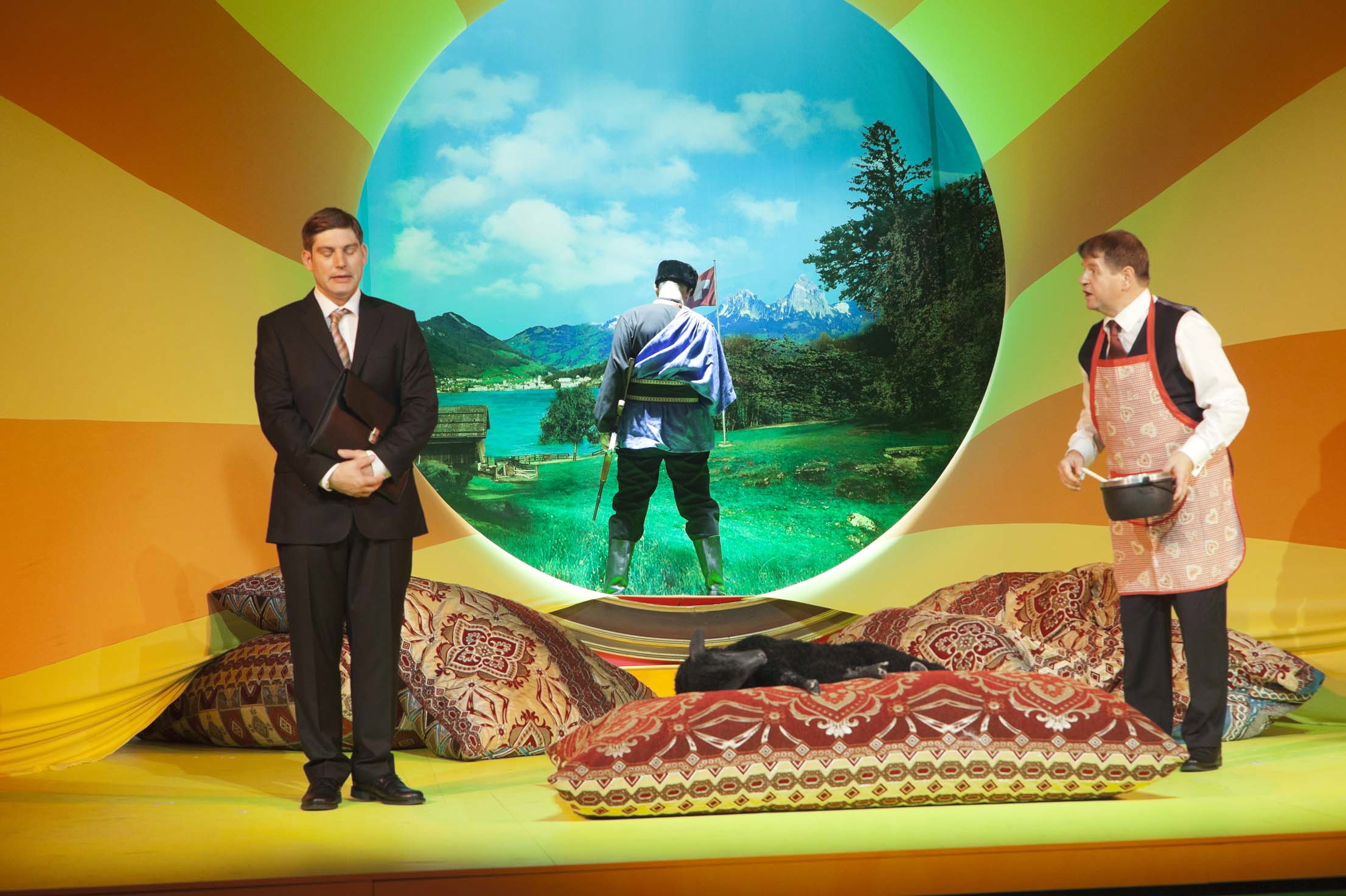 ...«Die Nepotistan-Affäre» ist ein temporeiches Stück, das einerseits von der Spritzigkeit des ausgezeichneten Ensembles lebt, andererseits aber auch von den rhythmisch gesetzten Anspielungen der Schreiber auf aktuelle politische Ereignisse. Die feinsten Anspielungen sind oft die besten: Etwa wenn General Guisan (Rolf Sommer) am anderen Seeufer deutsche Nazis vermutet und der Bundesbeamte abwiegelt: «Das sind nur süddütschi Taliban.» Das sitzt....Und für alle, die nicht an der Premiere waren, heisst es hingehen – luege, lose, lache!