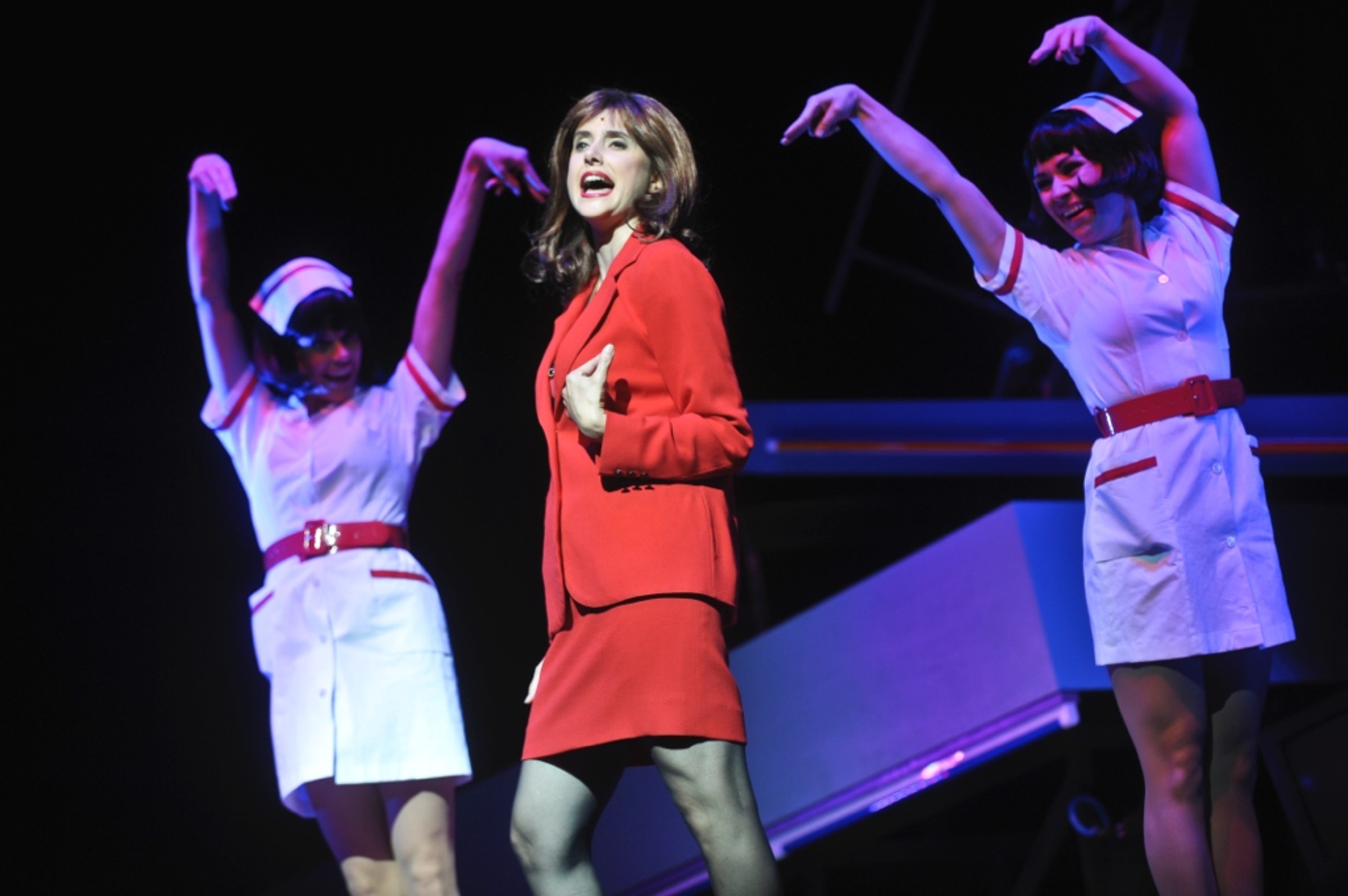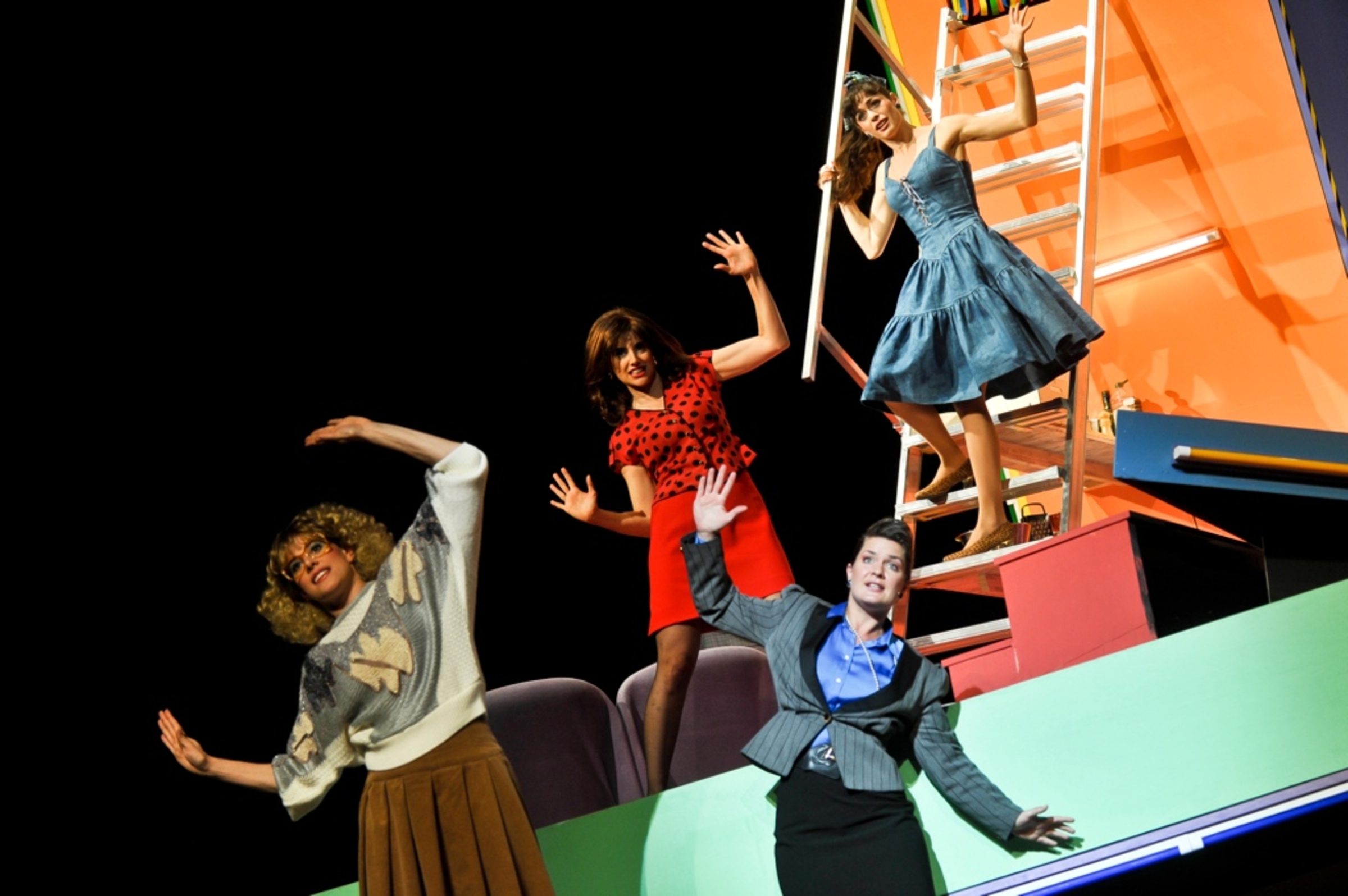 Jeffrey Lane (Buch) und David Yazbek (Musik/ Liedtexte) adaptierten den Kino-Klassiker für den Broadway. Und Stefan Huber inszenierte das New Yorker Erfolgsstück am Hans-Otto-Theater mit wachem Sinn für die bis ins grell Groteske getriebenen traurigen Realitäten des Alltags, durch den die vor Sehnsucht blutenden Frauenherzen wütend und unerlöst toben. Ein musikalisch zwischen griffigen Latino-Rhythmen und jazzigen Blechbläsern swingender Albtraum (Dirigent der Live-Band: Ferdinand von Seebach), in dem sich Bitterkeit und Süße, Schrilles und Sentimentales, frivole Farce und melancholische Komödie fein mischen auf der von Stephan Prattes fantastisch bizarr bebauten Drehbühne, die für den fliegenden Wechsel der vielen Schauplätze sorgt. Und auf denen die bunte, verwegene Truppe ballert, heult, kreischt, küsst und kopuliert, sich kloppt und böse Wahrheiten gegenseitig vor die Stöckelschuhe knallt.
