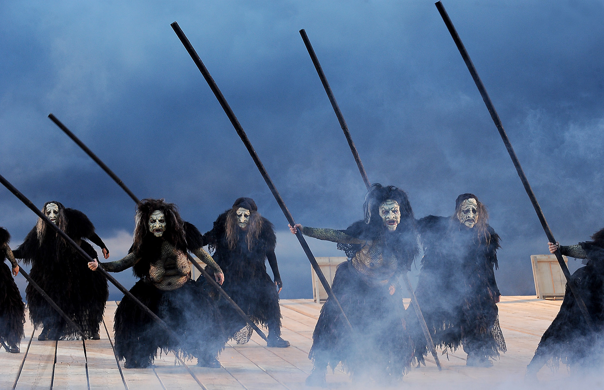 ein grausliches Hexenballett auf der Bühne erscheint, Christian Knecht als
