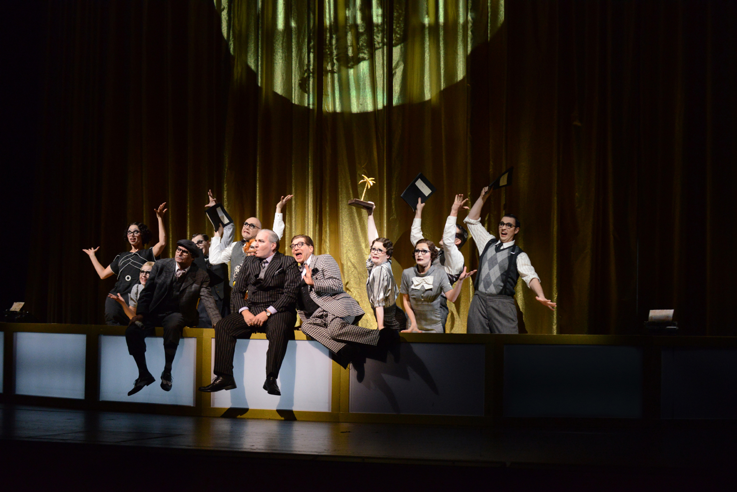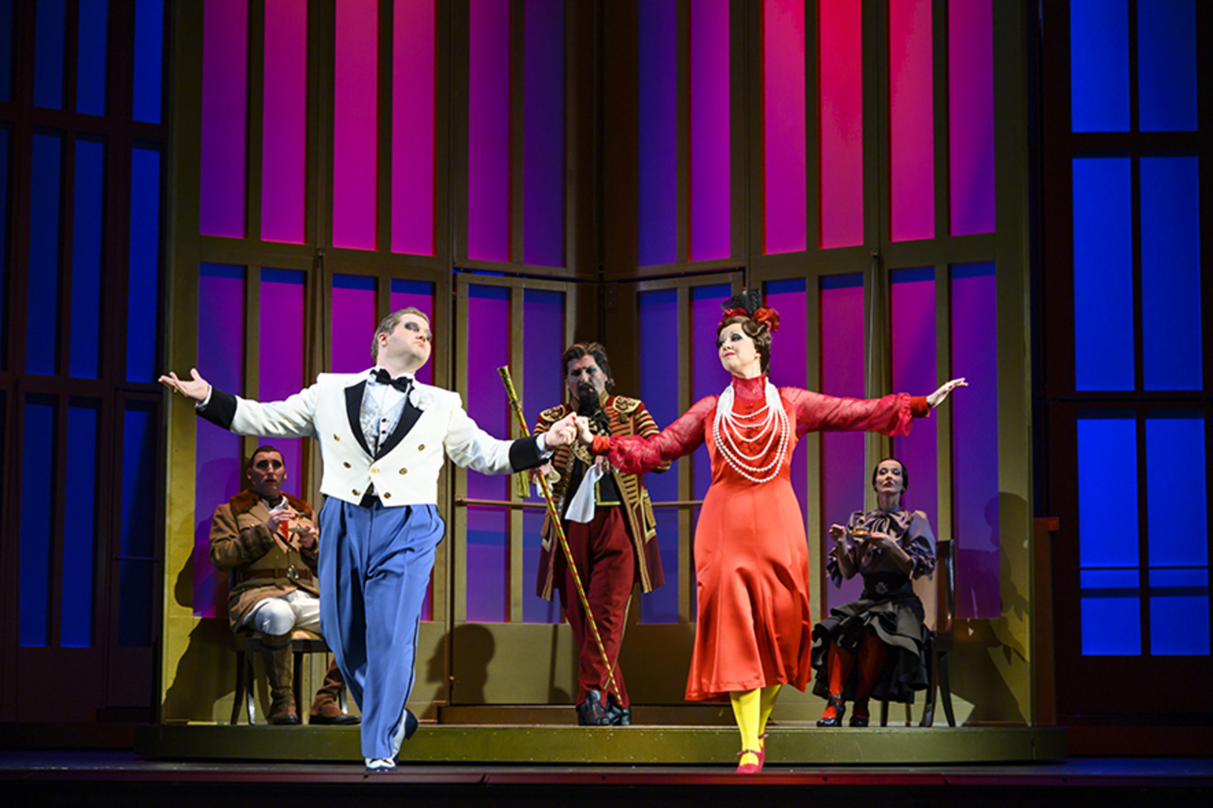 "(...) Abraham wrote a screwball comedy style score that brings together the best of then-current “American” music with wonderfully melancholic “European” moments. And the Staatsoper Hannover managed to find young performers who can cope with the tap dancing demands of the central roles, who also need to be singers with light comedy voices, not opera stars. (...) The reviews are positive, claiming director Stefan Huber brings “Schwung & Swing” into the opera house with his production. Critic Uwe Friedrich claims on Deutschlandfunk that Stefan Huber manages to start the evening with a rousing tap dance number of “earthquake dimensions” – and follows this with more and more dazzle till the final climax. You can hear Mr. Friedrich discussing the production here, including some wonderful musical excerpts. (...) Yes, a Stefan Huber production is never as edgy as a Christian Weise staging, and Weise’s Alles Schwindel (1931) is an even more novel approach to the long forgotten world of Weimar Republic operetta, and Spoliansky/Schiffer offer a much darker vision of operetta than Abraham/ Grünwald/ Beda ever did. But Märchen im Grand Hotel, as an exiled form of late Weimar Republic musical comedy, is part of the larger picture and should be part of the larger discussion today, just like Musikalische Komödie in Leipzig is bringing back various shows from Nazi times that show the actual difference in style pre and post 1933. (...) Mr. Huber already presented Nico Dostal’s late 1933 operetta Clivia in Berlin and showed where things were going in Germany with operetta fans Hitler and Goebbels leading the way. And Dostal eagerly following. (Though the Berlin production tried very hard to cover these traces and shift the work towards Weimar instead of Weltuntergang, which is legitimate.) Elsewhere, Raymond’s Maske in Blau has been brought back, too, to create a new framework. Putting all of this into context is a thrilling enterprise. And hearing Abraham’s music with such drive and divine zaniness as in Hannover is so much more fun that yet another “Dein ist mein ganzes Herz.” Unless you wish your operettas to stay in a Sleeping Beauty state forever.(...)"