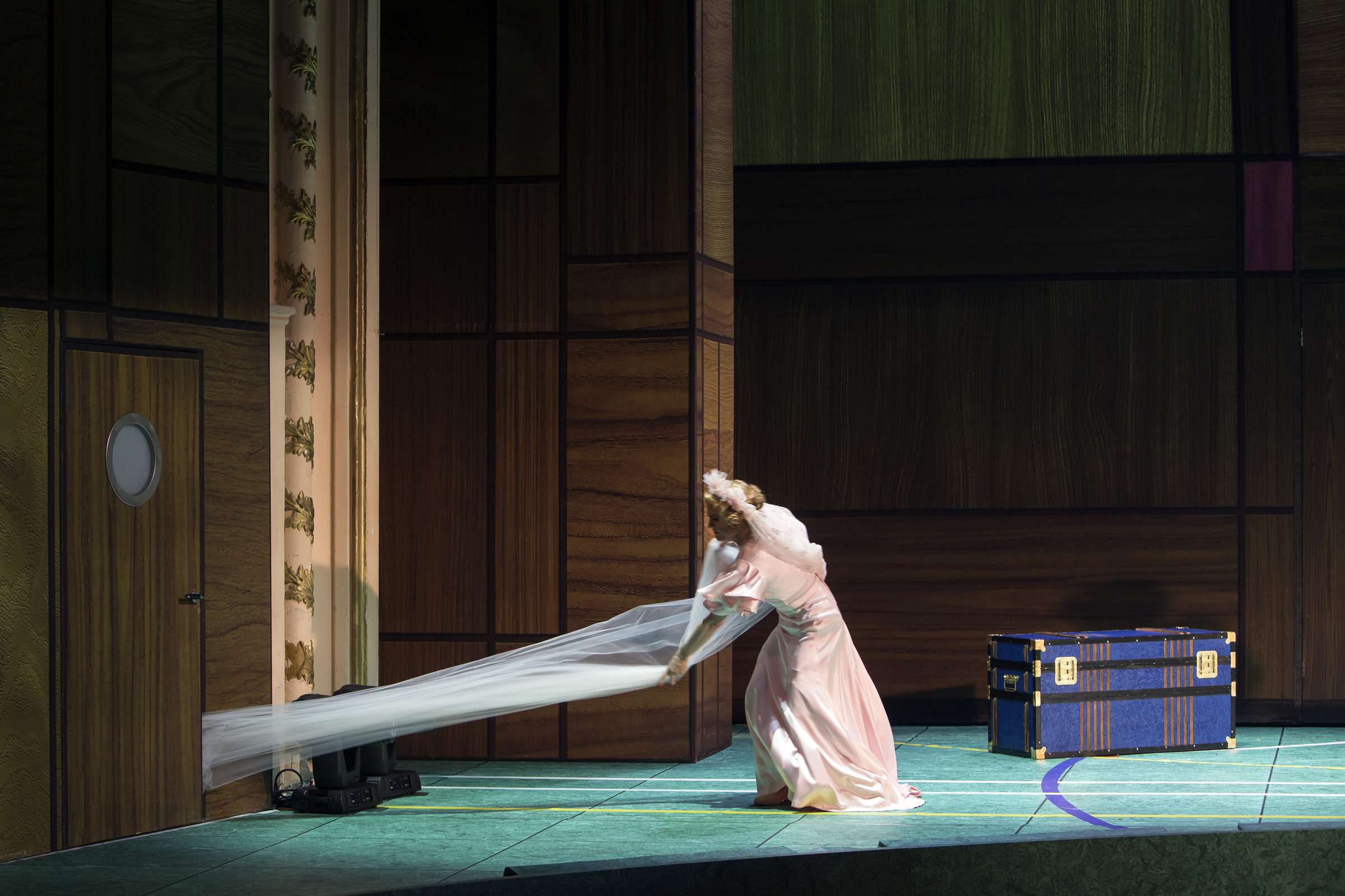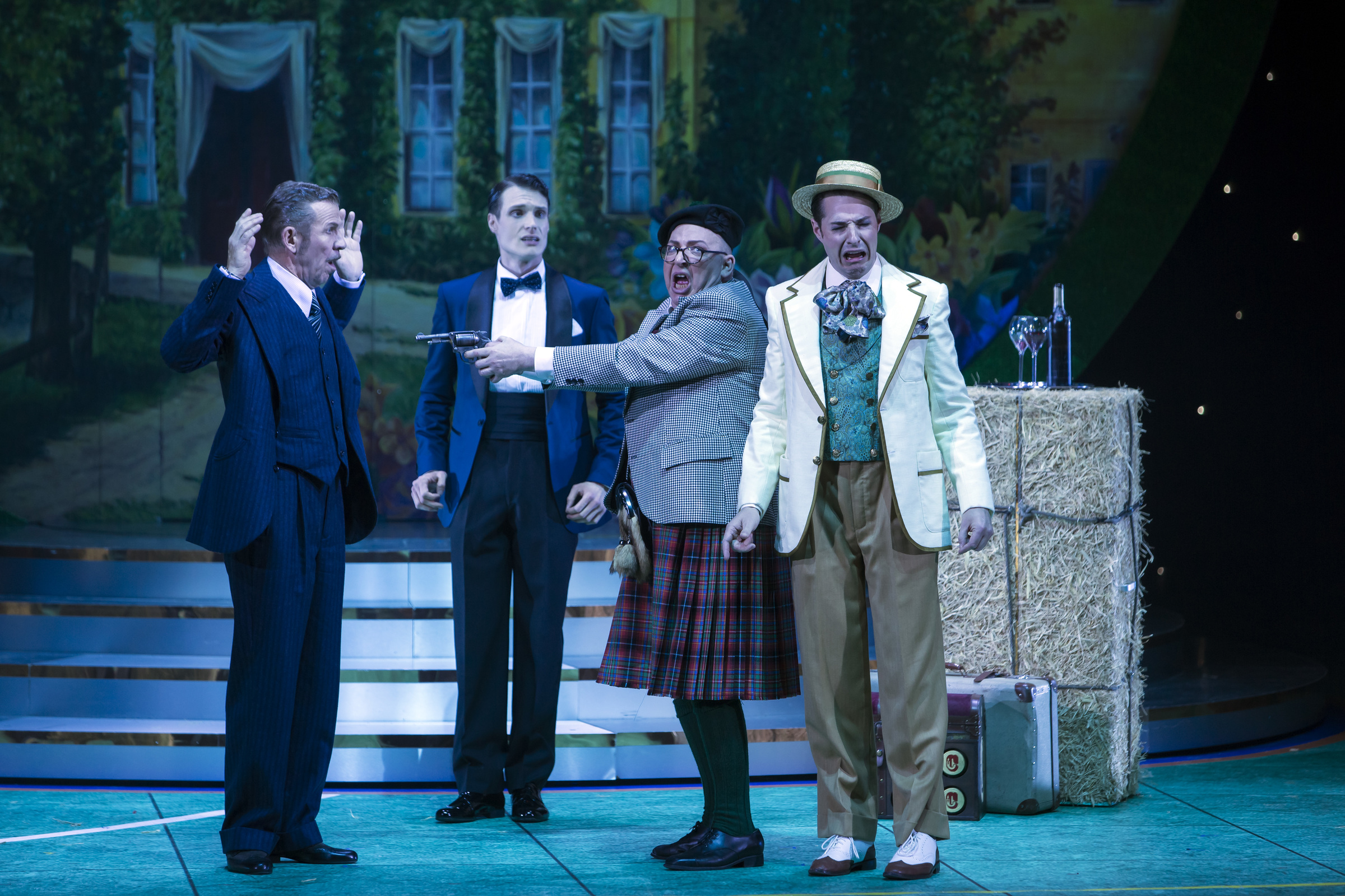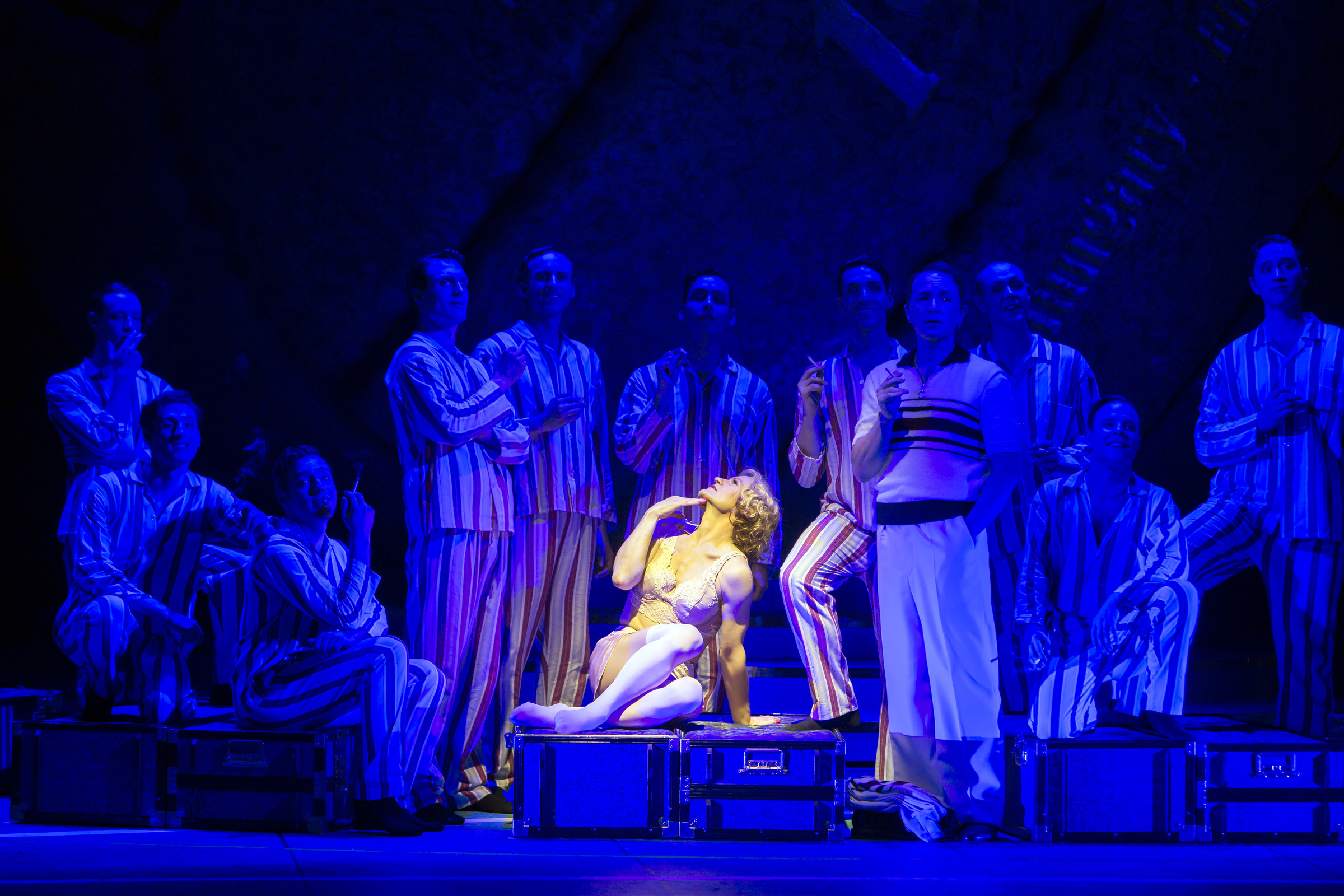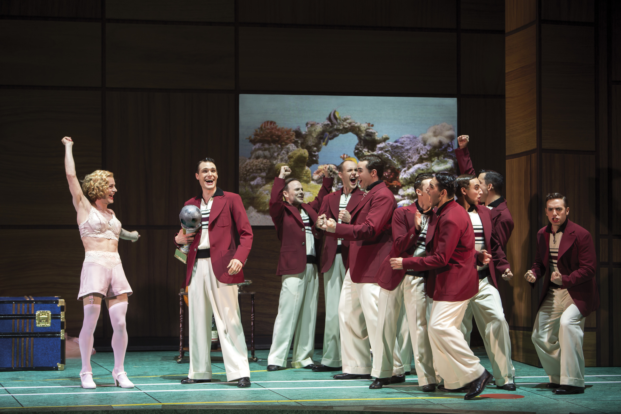 "At Komische Oper Berlin, Paul Ábrahám’s ‘last’ operetta premiered in a new production by Stefan Huber, with a newly arranged score and book by Mr. Huber and conductor Kai Tietje. The opening night was streamed live on Operavision Europe and is available online for three months.(...)And now there is a third option which has a cross-dressed Roxy, played by Christoph Marti in a peroxide wig, walking the fine line between total trash and a glamorous Rosy Barsony reincarnation, coy and crazy at the same time.The new opulent orchestrations for full orchestra don’t sound particularly vaudevillian, more like a Ginger & Fred invocation. They are not as fun to listen to as the No, No Nanette revival was in the early 1970s (with new orchestrations by Ralph Burns and Luther Henderson, capturing the original 1925 flair in a truly unique way). You might say Mr. Tietje’s work is more anonymous, standard fare. But that only make this new version slightly less enjoyable. The rest – with a re-arranged book – works very well indeed. With the scenes on the train, the whole thing reminded me a bit of On the Twentieth Century. Especially since the sets by Stephan Prattes and the costumes by Heike Seidler are dazzling. And I mean: really dazzling. The action is left in its original time frame, i.e. 1937. But there are no direct references to the political situation that was an obvious background-story for audiences in 1936-1938, giving the moments of head-over-heels escape a special poignancy that is lost now. Mr. Huber hints at some of these elements, e.g. with a weird Austrian border control officer, but on the whole he is busier letting a nostalgic camp spectacle unfold instead of emphasizing the many references to Olympia or the moral cleaning-up the Nazis propagated. The three Geschwister Pfister give three likable star performances, with Uwe Schönbeck as a superb character comedian (as Roxy’s stingy uncle Sam Cheswick from Scottland, always on the look-out to save money). But above all, Jörn-Felix Alt turns out to be the real operetta discovery of the evening, playing goalie Jani Hatschek. Mr. Alt brings such youthful energy, easy dancing skills and stylish singing to his role, after years of working in musical comedy and revues, that it’s a joy to listen to him and watch him. He joins the group of young leading men who recently created a sensation with operetta roles, making me optimistic for the future of the genre (in Berlin, at least). And the other hand-picked football players are equally delightful to watch.On the female side, it’s the girl group that is just as outstanding in its diversity and brilliance. And they can all dance: Danny Costello has created some fabulous group choreographies that lift the production off the ground, again and again. Add to that Andreja Schneider as a hillariously funny Aranka von Tötössy, the governess of the young ladies who gives somewhat unusual advice to her pupils. If you don’t want to take my word for it, go ahead, take a look yourself."