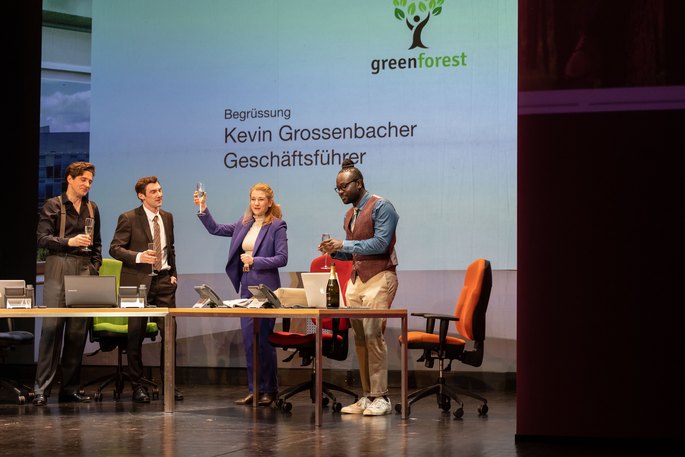 Kevin (Aaron Hitz) arbeitet als Fundraiser bei der NGO Green Forest. Als frischgebackener Nationalrat der Grünen wird er von den Medien mit Vorschuss-Lorbeeren überhäuft. Auch im Job steht bei ihm alles auf Erfolg. Zwei Tage vor dem grossen Spenden-Dinner stossen seine Chefin Dunja (Julienne Pfeil), der Projektleiter Patrice (Foscky Pueta) und Ruben (Diego Valsecchi), der PR-Verantwortliche, mit Kevin auf seine Beförderung zum neuen Geschäftsführer an. Am gleichen Morgen taucht in den Medien ein Foto auf. Es zeigt Kevin an einer privaten Party, als James Brown verkleidet und mit braunem Gesicht. Patrice – selber Person of Colour – bringt es auf den Punkt: Das ist Blackfacing! Das Bild geht viral. Kevin steht in der Öffentlichkeit als Rassist da und inmitten eines Shitstorms. Schnell springen erste Spender:innen ab. Dunja und ihre drei Mitarbeiter verstricken sich mehr und mehr in hanebüchenen Erklärungen. Bald sieht sich Kevin gezwungen, in die Offensive zu gehen und ist bereit, sein bestgehütetes Geheimnis preiszugeben … Mit: Aaron Hitz, Julienne Pfeil, Foscky Pueta, Diego Valsecchi Buch: Roman Riklin und Michael Elsener Regie: Stefan Huber Ausstattung: Heike Seidler Die Autoren Roman Riklin («Riklin & Schaub», «Secondhand Orchestra») und Michael Elsener (Satiriker und studierter Politologe) sezieren gemeinsam aktuelle Debatten und entlarven in witzigen Dialogen weisse Scheinheiligkeit. Sie machen Alltags-Rassismus und strukturelle Diskriminierung von People of Colour ebenso sichtbar wie weisse Privilegien. Regie führt der Zürcher Stefan Huber (u.a. «Achtung Schwiiz!» und «Die Nepotistan-Affäre»). «Shitstorm für Anfänger*innen» ist eine brisante Mundart-Komödie voll mit überraschenden Plot-Twists und beissendem Humor.