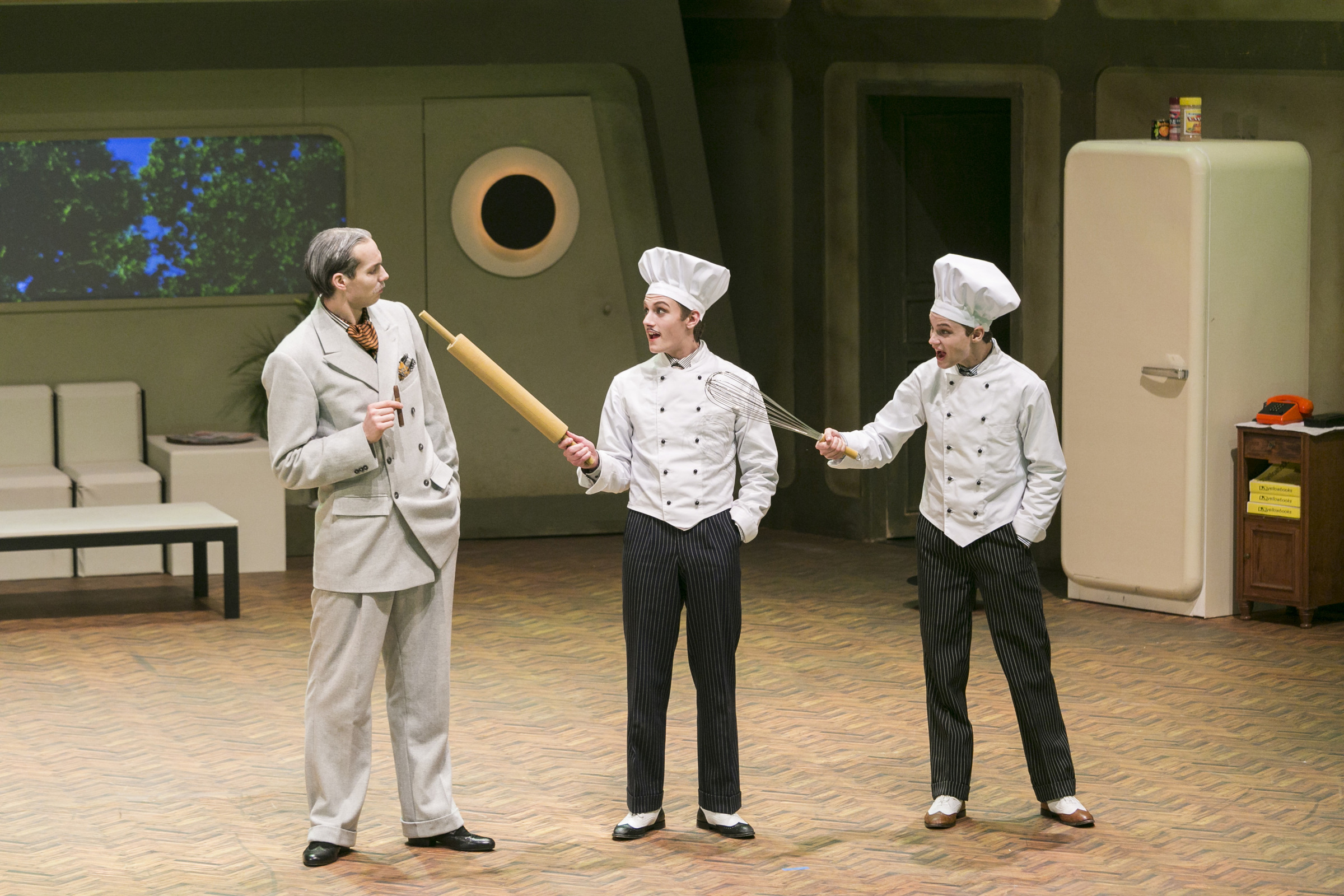 "(...) Dass hier Berufsanfänger am Werk sind, fällt nur noch am sehr jugendlichen Alter des Ensembles auf. Sehr souverän spielen sie in der Inszenierung von Stefan Huber und zum Sound des von Tom Bitterlich geleiteten Drowsy Orchestra mit den Manieriertheiten und Klischees der durchgeknallten Paradiesvogel-Parade aus hysterischen Folien-Stars, Theateragenten mit bösen Absichten, Gangstern, die sich als Konditoren tarnen oder einer Anstandsdame, die trotz Prohibition den wodkalastigen Cocktail nur selten aus der Hand legt. Zumindest für zwei Stunden grandiosen Musiktheater-Spaß fühlt der Zuschauer im Prinzregententheater mit dem weltflüchtigen Erzähler und denkt sich: Der Mann hat recht.